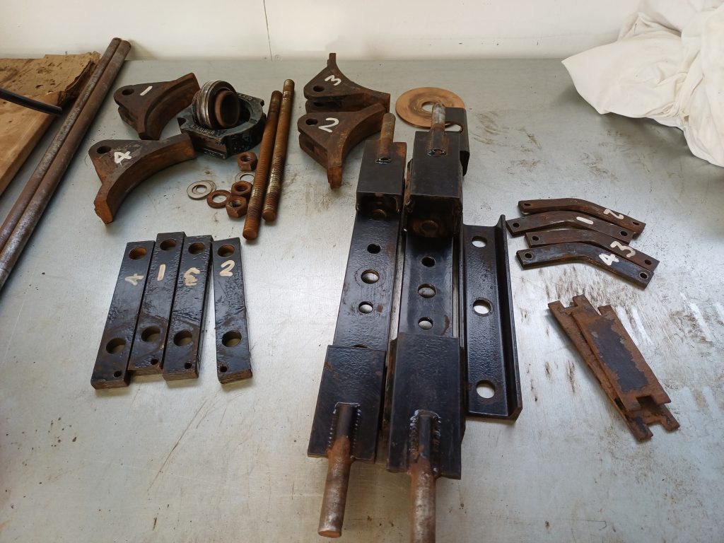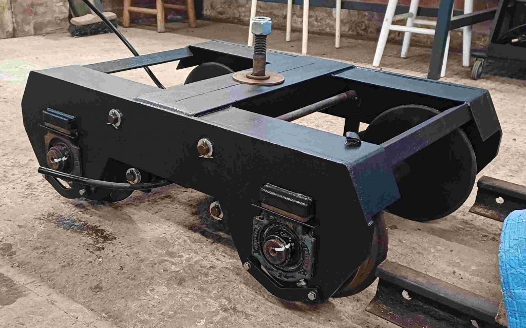 One of the carriage bogies needed maintenance work doing to its brakes, so the opportunity was taken to send it off-site to be stripped down and refurbished at the same time. Parts were disassembled, cleaned up and repainted. A worn axle was turned down, a new brake shoe fitted and everything put back together, ready for the next running season.